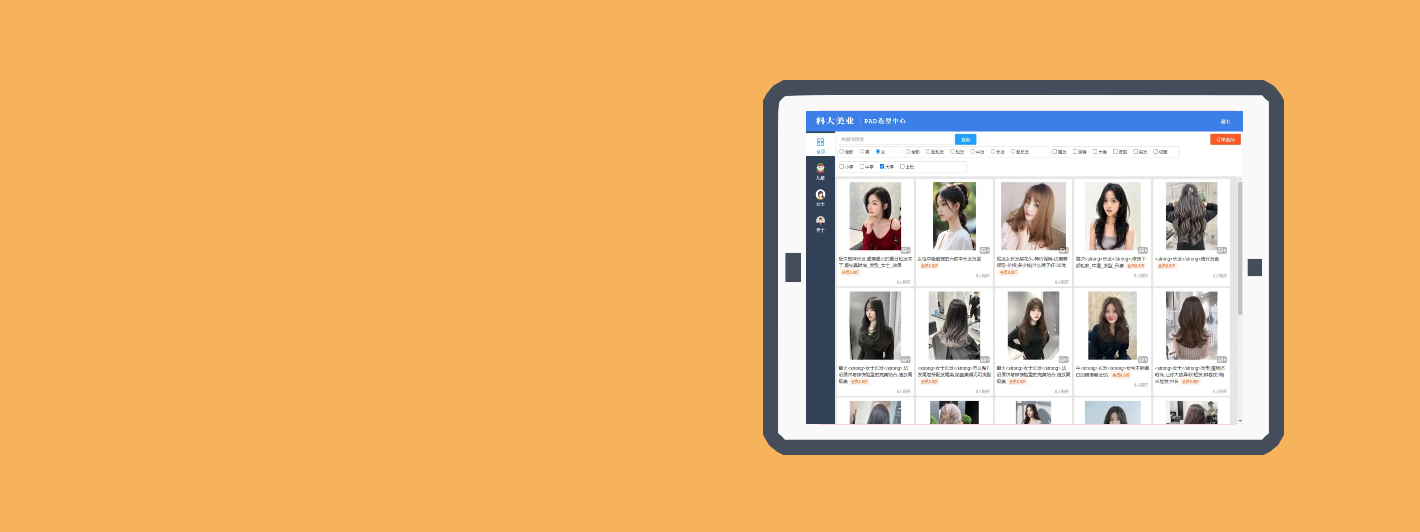 平板端:运行选发型APP,提供给理发的用户使用