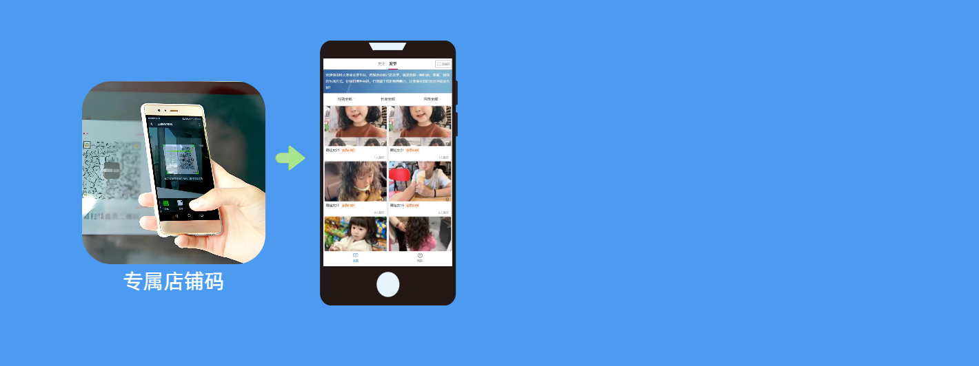 理发客户使用微信扫客户二维码,进入选发小程序,在小程序中可浏览和选择自己喜欢的发型库。客户二维码由店长通过平台后台申请